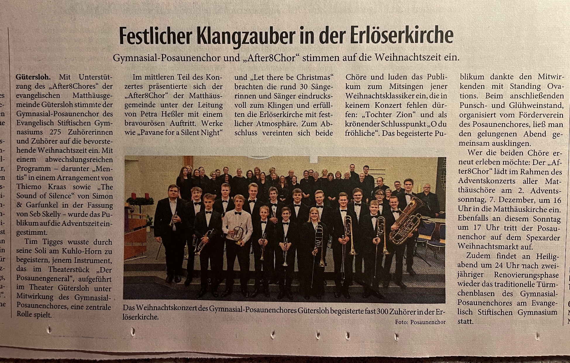 Die „Neue Westfälische“ schreibt am Dienstag, 21. Dezember 2021: Posaunen schweigen am ESG